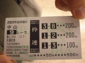 適当な競馬新聞を購入し、熟考に入るオイラ。2500円くらいつぎ込んで望んだ中山第九レース「有馬記念」。結果は枠連200円だけ取れました。馬単で3-12を300円買ってあったのが悔やまれる所です(結果は12-3)。てか、