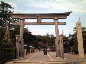 毎年、大晦日と正月三が日の巫女さん(幸娘と呼ぶらしい)はもちろんのこと、昨年2003年の創建2100年祭では応募者1213名(!)の内、選ばれた30名が祭礼の巫女として神事を行ったらしい。つまり