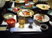 午後6時半ごろから、夕食。あれま〜、通常の食事でこれですか?なかなかレベル高いではないですか!!。能登牛のすきやきにずわいがに、鱈白子の焼き物にナマコの和え物。海の幸がいっぱい〜♪。オイラは元々、海の子。海の幸マンセー!!!