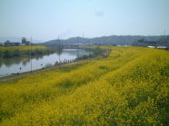 今日は暑かったですな〜。昼間に車を洗っていたら熱射病ぽくて頭痛くなってしまいましたがな・・・ で、そんな初夏な陽気の中、福井市の中心部を流れる足羽川の堤防沿いに菜の花が群生しているのを発見。