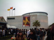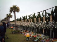 しかし、それよりもビックリしたのが人の多さと行列の長さ。最後尾はどこかいな〜と隣接するうみかぜ公園に歩いていくと、ありました!最後尾プレート。何か のようです(汗)。それにしても、想像していた以上の人の多さ。数千人規模の行列ですな。改めてhideの偉大さとファンの思いの強さを感じました。 また、隣の公園では馬鹿でかいモニターでhideのPVを大音量で流していたり屋台が出てたり、京急のhideバスが展示してあったりとお祭り気分も楽しめました。