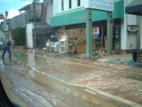 何やら関東地方で最高気温の記録を更新したとか。東京で39度だとかどうとか。あ〜、デフォで体温よりも高いですな〜。記録的な豪雨だったり温度だったり記録ずくめな夏。 さすがはオリンピックイヤー。でも、こんな異常気象はもうイヤー(さむぅ!) そんなわけで今日は1日、お仕事のオヤスミをもらって災害の後始末。近所の様子を写真に収めてきたのでちょちご紹介。