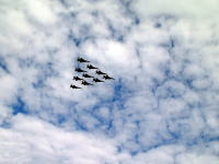 F15-J編隊飛行 といったオイラが燃え〜な写真ももっとバリエーション豊かなアングルで撮れるんでないかい?ヤヴァイ! でも、先立つものがありません。南無ー。 てか、最近の携帯電話はデジカメ付いてるけど皆さん、使ってますかぁ?。街で芸能人見かけたからって携帯で写真撮ったりすると殴られますよぉ(笑) オイラはわざとカメラが付いてない携帯を購入したので・・・。携帯に何万も出すなら、単体でデジカメ買うわいというヒネクレタ考えの持ち主なんで(爆) というわけで今年も小松航空祭が近づいてきました。天気、晴れるといいなぁ(そーいや、去年は晴れすぎて暑すぎたなぁ・・・汗) そんなわけで来年の航空祭までには10倍以上のズームな1眼レフデジカメ買ってやるぅううう!!! |