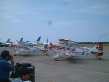 今年も「小松航空祭」に行ってまいりました。今年は航空自衛隊50周年記念ということでずいぶんと前から楽しみにしておりました。 そんな気合いを入れていたのにかかわらず、当日は寝坊しました・・・藁。ああ、携帯のアラームを5時30分、35分、40分と3回もなるようにセットしたのにも関わらず、日曜日はアラームならない設定にしてあったのをコロッと忘れてました。 で、予定より30分ほど遅れて目覚めたのでヤヴァイ!と急いでカナヲに電話してみるとカナヲも寝てましたさ・・・爆 そんなわけで予定よりも1時間遅れての出発。時間的にヤヴァかったので北陸自動車道を時速130〜140キロで爆走する我が愛車「ぱ太郎」。 飛ばしに飛ばしまくってあと10キロほどで小松基地最寄ICである片山津IC(かたやまづ)というところで高速の電光掲示板にはすでに くそう、こうなるのが分かってたから早く出発しようと思っていたのに不覚であった・・・。来年はお互い寝坊せずにもっと早く出ようよ、カナヲさん(笑) てなわけで、片山津ICの手前1キロほどから渋滞につかまり20分ほどのタイムロス。その間にF-15Jが次々とテイクオフしていくではないですかぁああ。くそう、今年は午前8時前のオープニング飛行を最初から基地内で見てやるぅと意気込んでいたのに残念無念。カナヲさん、来年はほんとに早起きするわよ!! 結局、小松基地の中に入れたのは午前9時前。バス乗り場から展示会場のエプロン(基地の格納庫前の広場)に向かって歩いていくとさっきから飛行をしていたF-15J、20機ほどが50という文字を作りながら編隊飛行して基地上空へ飛んでくるではないですか!!あの姿に最初から感動しましたよ!!!キャハー! その後、F-15Jの編隊飛行、F-2の模擬対地攻撃と続いて、待ちに待った元F15-Jパイロットのロック岩崎による「エアロック」。今年は2機でアクロバットとのことで本当に楽しみにしてましたさ。 てか、相変わらず という曲芸の数々。しかも、今年は2機!。ああ、よい物を見させていただきました。また、来年もよろしく!ロック&サニー。 エアロックで華麗な飛行を見せてくれる2機の機体 で、午後からは航空祭の華「ブルーインパルス」。今年も昨年に引き続き、6機編隊でのフライト。しかも今年は50周年とのことで新しい技も見せてくれるそうな、楽しみ〜♪ そんなわけで、飛行機堪能しすぎてお腹イパーイ、ついでに人もイパーイな小松航空祭。 でも、パンフレットには米軍機の展示でF-16と書いてあったのに米軍機は一機も来てなかったのがガッカリ。あ〜、ファイティングファルコン見たかったなぁ・・・。 にしても、昨日までの天気予報では午前中は雨だったけど、予報は大はずれでいい天気でした。てか、いい天気すぎて OH!今年の夏は、コミケでも焼けなかったのに小松で焼けちまったぜ。しかも、季節外れ(汗) でも、飛行機はやはり青空の中を飛ぶのが一番サマになりますな。ほんと、晴れてよかったよ。また来年も晴れるといいなぁ。 あと、来年の航空祭までにはいいカメラ買ってやるぅううう。 現在の日本の主力戦闘機「F-15J」 「F-15J」に替わって主力機になる予定だった「F-2」。 しかし、高額すぎる機体コストにより配備数が大幅減・・ |