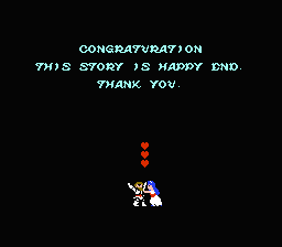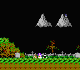はい、皆さんもご存知のカプコンの出世作「魔界村」のオープニングです。 主人公のアーサーとプリンセスはひと時の休息を楽しんでいましたが、魔王の使いであるサタンに連れ去られてしまいます。 その連れ去られた姫を助け出すのがゲームの目的なんですが、よく見るとこのオープニング。おかしいところがありませんか??? なのです。普通に考えると墓場でパンツいっちょうで姫と一緒にいるのはおかしい。でも、でもね、 ああ、そういう意味だったのかぁって感じ。よく見ると いや〜、こりゃお兄さん、恥ずかしくてファミコンミニ魔界村を電車の中でプレイできないっすよ(笑) 事の始まりはきっとこうです。久々のお忍びデート。まわりに騒がれずにくつろぎたい二人は人気のない墓場へとやってきます。 そこで二人、腰を下ろしのんびりと語り合っていたのですが、あまりに暑いのでアーサーは着ていたヨロイを脱いでしまいます。 身軽になったアーサー。ふと姫の体に目をやると というのも、姫の名前はプリンセスプリンプリン。名は体を表すの言葉どおり、ボンキュボンに違いありません。 そんなナイスバデェを見ていてムラムラっとこない方が男としておかしい!!。アーサーもご多分にもれず元気になっちまったに違いありません(オイオイ) 元気になったアーサー。それを横目で見ていたプリンセス。だぁああああ! させていただきます(笑)。 そうか、きっとこの時に飛んできて姫をさらっていったのはカプコン側の自主規制の象徴だったに違いない。
