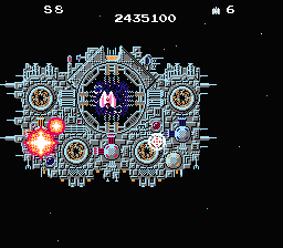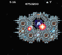 ていうか、スターソルジャーの13面からこんなに難しかったっけ?って感じ。まぁ、バリア外して誘導弾出さなければ楽なんだけど、点効率落ちるし・・・ でも、手連でラザロを破壊できたときは少し嬉しかったり。うう〜ん、懐かしい。 |