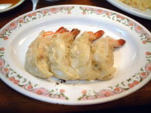 そのあと、なんば駅近くでチーズケーキ買ってお腹減ったねぇとフラフラしていたら「餃子の王将」を発見。何でも前日放送のナイナイの番組「めちゃイケ」で矢部っちが新メニューを考案した場所らしい。 というわけで、ミーハーなオイラ達は速攻でここに決めて、注文ももちろん矢部っち考案の「エビ餃子」と「カニ炒飯」。 お味の方は「エビ餃子」はエビがぷりっぷりで美味かったす。カニ炒飯は別に普通(笑)。でも、ネタとして面白かったので満足でした〜♪ ![]() こんな風に紹介されてた