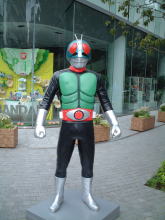 道もわからんけど取り合えず歩いていたら、道端に仮面ライダーが!!なんじゃこりゃ?と見てみるとナムコと合併するバンダイの社屋ビルではないですか?ほうほう、このような場所に立っておるとはのう。