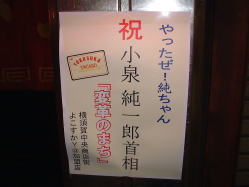 衆院選ですが、意外なほど自民党の圧倒的な勝利でしたね。自民の分裂選挙区での漁夫の利を生かして均衡した戦いになると思いましたが、まさかここまで一方的になるとはビックリです。 ほんとに自民党、小泉さんの選挙戦略のうまさが目立ちましたね。勝因は大きく二つあったと思います。まずは「国民に訴える公約を郵政民営化一本に絞ったこと」 他にも年金だ少子化だと重大な問題が山積みなのに、「まずは郵政!」と詳しい説明もせずにバカの一つ覚えのように訴えたことで広く国民に浸透したこと。 政治に関心のない人でも今回の選挙は「郵便の民営化」が焦点なんだと簡単に理解できたのが大きかったと思います。いつもの選挙は「色んなことを言ってるけど、結局、私たちの暮らしで何が変わるの?」と思うことがほとんどですからねぇ。 民主党は他にも色んなことを掲げて訴えかけてましたが、逆に分かりにくく票を逃す要因になったと思います。 そしてもう一つの勝因は「郵政反対派を敵役に仕立て上げたこと」だったと思います。造反議員を片っ端から切り捨てることによりうまく自民党が正義の味方となった雰囲気を国民に浸透できたのが大きかったと思います。 その敵役に知らない間に民主党も仕立て上げたのが上手すぎる戦略だなぁと。 また自民党の「改革を止めるな」と言うスローガンと民主党の「日本をあきらめない」と言うスローガンを比べて見ても民主党の負けだったなぁと思います。前向きな自民党に比べて、やや後ろ向きな民主党ってイメージがスローガンからも読み取れます。 「頑張って!」と応援されるのと「あきらめないで!」と応援されるのでは「頑張って!」の方がやる気でるよ。 何はともあれ、「政策うんぬんが関係なしに」パフォーマンスで票を集めた自民党。日本の舵取りは表面だけでなくきっちりと行って欲しいものです。 でも、今回の選挙はいつものように「私、一人くらいが投票しても日本は変わるわけないじゃん」っていう声があまりなく「投票すれば何か日本は変わりそうだな?」と言う雰囲気があったのは大変良かったと思います。 自分たちが住んでいる国です。今、この国がどうなってるのか?と少しくらいは知っておいてもバチは当たらないと思いますよ。 そんな激戦区だった福井一区の有権者、自称社会派オタク「ぎたにぃの戯言」でした。いやー、当落の差が300票ほどって本当に激戦でした。あと、全国で一番少ない得票数で当選ってのも福井らしいなぁと思いました(笑) ![]() 小泉さん、総理就任直後当時の張り紙。横須賀市にて2001年撮影 |