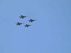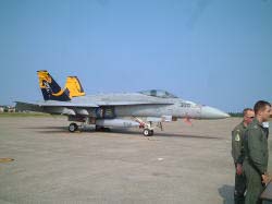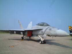 今年も小松基地航空祭に行ってきました。今回はカナヲ先生の都合がつかないので、オイラのばあちゃんと行ってきました。ばあちゃんも久々の航空祭ってことで大変楽しみにしていましたわよ。 ドライブBGMに「アフターバーナー」と「エナジーエアフォース」をセットして朝6時に出発。6時半には北陸自動車道の片山津(かたやまづ)ICに到着したのにすでに渋滞中。こりゃ、いったい何時に来ればいいのさ(笑) で、基地見学駐車場に着いたのが7時前。しかし、すでにバス(基地内へは一般客はバスを利用しないと中に入れません)の行列が凄まじいことになってた、いったい何時に来ればいいのさ(笑) 結局、基地内の準備が出来ましたという放送が流れ、バスが運行し始めたのは7時半ごろ。並んでいる間にオープニングフライトが始まりました。目の前で飛びたつF-15JとT-4。最初から見ようと思ったらいったい何時に来ればいいのさ(しつこい)。結局、オイラが基地内に入れたのは8時45分でした、げふん。 まず目に入ったのはUS NAVY(米国海軍)の機体が二機。おお!あれはF/A-18ではないですか!しかもスーパーホーネット!ってことでテンション上がりまくり。残念ながら最新鋭のF/A-18FではなくF/A-18Eでしたが、久々のホーネットに感激なオイラ(昨年は米軍機展示がなかったため)