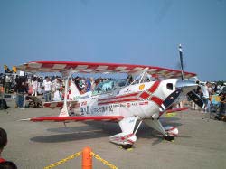 8機編隊飛行なムービー4機の編隊飛行。オイラのカメラではこれが限界。ムービーは8機編隊 残念ながら今年はチーム「エアロック」の飛行はありませんでした。ピッツの地上展示だけでしたが改めてロック岩崎さんの偉大さと多くの航空ファンに愛されていたんだなぁと感じました。天国でも飛びまくって下さい。 ![]() 空へ!その思いは大勢のファンに受け継がれてますよ さて、来年こそはもっといいデジカメ買うぞ(笑)。デジタルビデオカメラでもいいなぁ、平気で10倍ズーム(デジタル200倍)とか出来るんだもんねぇ・・・ |