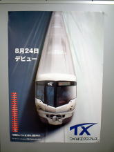 ![]() ひやっほー!TXだぁ 先月、開業したばかりの「つくばエクスプレス」(以下TX)ですよ。ミーハー鉄なオイラとしては乗りたかったのさ。 同じく開店したばかりの「ヨドバシアキバ」を横目に早速、TXの駅に。案外、地下深くまで降りていくのでビックリ。都会の人は本当に良く歩くなぁ。福井にいたら、この距離を歩くとなると車乗るよ(爆) 歩くこと約5分でようやくTXのホームに到着。おお。これがTX車両の2000系か。面構えとしてはJR四国の鉄仮面「マリンライナー5000系」に似てるなぁと思ったり。