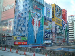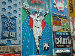 ![]() 左:2003年優勝時の戎橋のグリコ 右:今年1月のグリコ(飛び込めないように壁が・・・) |