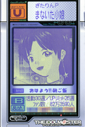 PS3の製造コストは900ドル以上もするそうですよ。まぁ、Cellにブルーレイ搭載ではコストも物凄くかかると思いますがちょと予想より上でしたねぇ。 オイラ的には日本での価格は79800円が妥当だと思っていたのですが、100000円超えるとかなり痛いと思います。まぁ、PSPのように赤字覚悟で値下げしてくるかもしれませんが高いのは確実ですねぇ。 これは任天堂に期待ですよ。GC版の「ゼルダ」は今年秋くらい。レボリューションは年内発売らしいので楽しみです。詳細は5月のアメリカで行われるE3で発表されるんでしょうねぇ。いいなぁ、アメリカ行きてぇな・・・ 昨日、アニメイトに行ったのですがこんなグッズが売っていたので早速ゲッチュ! ![]() 雪歩ステッカー ![]() アイマスロゴ入り名刺入れ ![]() 名刺入れに入っていたキャラクターカード(雪歩) まぁ、ぼったくられている感が満載ですがカード入れは適当なのが欲しかったのでちょうど良かったかなと。これにユニットカードなど入れて頑張りますよ。間違っても、本業には使いませんよ(笑) と思ったら全然、枚数入らないぞ。ダメだこりゃ・・・汗 そんなわけで、70Kオーディションに突っ込んだらフレッシュ負けくらってショックだったぎたりんPでした・・・あうー |