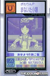 PS2で発売されるギャルゲー「キミキス」の発売日は5月25日らしいですね。ようやく決まりましたぁ。これは楽しみですよ。 でも、5月25日はPS2版「つよきす」も発売ですよ。お店で「キミキス」を買おうとして「つよきす」を買わないように(その逆も然り)、良い子のみんなは両方買いましょう!!!(いいのか?それで・・・) あ、あの、この前、事務所に行った時に社長に会ったので、 「最近、ぎたりんプロデューサー、事務所に来ていないんですか…?」 って聞いたら、社長の何かに…火がついてしまったみたいで… 「そうなんだよ萩原君!彼は最近、全然顔を出さない!私の若い頃はもっと…」 あ、長かったので途中は…あの、忘れてしまいましたけど… 最終的に、「こんなに顔を出さないなら、ちょっとぎたりん君の扱いを考えねばならんかもしれないな!」 とか言われてしまったんですぅ…。 も、もし、私のせいでプロデューサーがクビになったりしたら…と思って、私、私…。 「あ、あの、今週の木曜日午前10時〜金曜日午後6時ぐらいには事務所に来るって聞きましたけど…」 って勝手に言っちゃったんです……。ご、ごめんなさいっ…。 あの、でも、本当に来てもらえたらウソじゃなくなるし… あの…本当に来てもらうわけには、いきませんか…? うう…ダメ、ですか?あの、勝手なこと言っちゃって、すみませんでした…。 別に雪歩が悪いわけじゃないよ。悪いのは いやー、社員の金で自分の所のアイドルを育てるというプロダクションですよ。そりゃ、ボビー・オロゴンも暴れてムルワカさんも久々にTVに出てきますよ(今更、このネタかよ)。 そんなわけで今日の流行情報、じゃなくてぎたりんプロデュースの近況報告だ。
