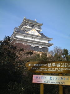 天気が良くて久々の土曜休みだったので 美濃を制するものは天下を制す。我が野望のためには避けては通れぬ道。いざ出陣じゃあ! 岐阜市は旅の通過点としては何度も立ち寄っているのですが、目的として行くのは初めてで車では行ったことがありません。一般的なルートとしての名神高速の岐阜羽島ICで降りて、県道77号線で一路、稲葉山を目指します。 福井を出立すること約2時間半。稲葉山のふもとまでやって来たものの観光地らしくないので駐車場が分からん。仕方ないので長良川河川敷に止めていざ、進軍開始。 稲葉山城は標高338メートルの山の頂上に立てられた難攻不落の山城。文明の利器「ロープウェイ」というものでもいけるらしいが、ここは己の足で攻め落とすのが武士と言うもの。頑張る!日本男児。