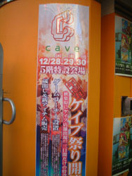 ゲーセンHeyで開催されていたCAVE祭りです。初日は物販の列が凄いことがなっていたそうですが、今日は行列が全くありませんでした。と言うことは売り切れまくっていたとのことですがね。オイラ的にはCDは全て持っているので新規購入するものは特になし。「虫姫さま ふたり」のポスターを買ったくらいです。 ゲーム的には「虫姫さま」の青版が興味深かったですが、虫姫さま自体ほとんど忘れているし弾速が物凄い速さになっていたのでプレイしませんでした。「虫ふた」のver1.5は5億前後の特典をたたき出す人が続々といましたね。やっとこさクリアしただけのオイラは手も足も出ませんよ、はははは。まぁ、プレイの参考になったので良しとしましょう。