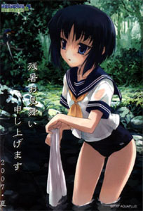 ![]() スク水セーラー服とはマニアックな・・・ アクアプラスから残暑見舞いが届きました。今年はイラストモロ出しの葉書ではなくペリっとはがすタイプでした。昨年の残暑見舞いで苦情が来たのかな?とちょと考えたりしました。 それにしても、PS3でゲーム出すのね。売れないだろうなぁ・・・汗 |
