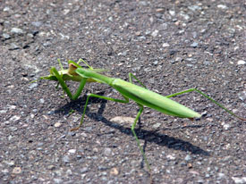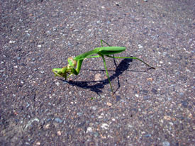 ![]() いただいてまーす 本当はバッタを捕まえる前から写真を撮っていたのですが、後で画像を見てみたら撮れてなかった。やっぱりまだイマイチこのカメラの使い方が分からん。撮る瞬間にピンボケしたりするしなー、やっぱり特訓しないとダメだな。 このカマキリ君、最初一回目はバッタに逃げられたのですが、すぐさま後ろに忍び寄り二度目にして捕らえました。うーん、自然界の掟を垣間見た気がしましたさ。 ![]() 何見てんだよ、オラ! それにしてもよほど腹が減っていたのか、モリモリ食べていましたよ。5分ほどでバッタの頭が無くなってましたもん。食物連鎖を通じて世の無常を感じました。バッタ君のご冥福をお祈りいたします。 |