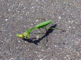 自宅前でカマキリを見かけました。別に珍しくもないくらいゴロゴロ自生しているのですが、ちょうど狩りの瞬間に立ち会いました。