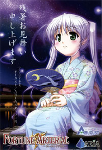 ![]() まぢで暑いっすよ 年二回恒例のオーガストからのお届けモノが来ました。ドリームパーティ配布冊子と夏コミで配布したらしいCD-ROMも付いてきました。 内容的には新作「FORTUNE ARTERIAL」一色なんですが、えらい開発期間長くないっすか?前々作「月は東に日は西に」前作「夜明け前より瑠璃色な」が個人的にイマイチ宜しくなかったので、今回はどうなるのかな?と不安と期待がいっぱいです。 でも、ムービー見る限りでは音楽は今回もよさそうですな。問題はシナリオですけど・・・ 発売的に冬らしいですが、Leafの「ToHeart2 AnotherDays」と発売かぶりそうだなーと思っていますが果たして??? |