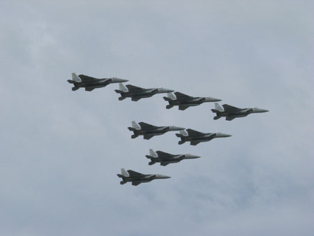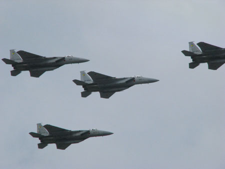 朝も早くから小松基地航空祭に行って来ました。今回は新カメラを携えての参戦ということで気合い十分、テンションマックスファクトリーですよ。 そんなわけで今回は地上展示よりも飛行写真に重心を置いて撮影に望みましたよ。うむ、やはり今までのデジタル4倍までしか出来なかったデジカメとは別次元大介な写真が撮れましたよ。良いかな良いかな。 ただし、飛行速度が早すぎてフレームに上手く収まっていない写真も多々あったのがねぇ・・・。これはカメラ云々と言うよりも撮影者のスキルの低さですな。げぶー。 ![]() タキシング中のF-15J ![]() タキシング中のF-15Jその2 ![]() 急上昇するF-15J ![]() F-15J機動飛行その1 ![]() F-15J機動飛行その2 ![]() F-15J編隊飛行その1 ![]() F-15J編隊飛行その2 ![]() F-15J ![]() 支援戦闘機F-2 ![]() CH-47による消化剤ばら撒き訓練 ![]() U-125Aによる遭難者探索中訓練 ![]() UH-60Jによる遭難者救助訓練その1(隊員下降中) ![]() UH-60Jによる遭難者救助訓練その2(要救助者収容中) ![]() ボーイング747-400 ポケモンジェット ![]() ボーイング777-200 たまごっちジェット |