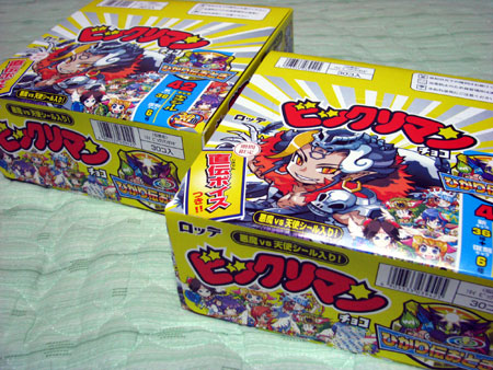 ![]() ビックリマンチョコ ひかり伝おとぎ また少年の頃の夢を大人の財力で叶えてしまいました。べ、別にアンタのことなんて好きでも何でもないんだからねっ! ![]() うお!ふ、増えた! 2006年2月にビックリマンチョコの箱買いの夢は叶えてしまったので今回は二箱大人買いに挑戦しました。いやー、見てても爽快。まぢで売るほどチョコがありますよ。コレは愉快だ。 ちなみに今回のシールはひかり伝の第四弾になります。なかなか萌えな感じのキャラがお目当てです。どのキャラかはシールが出てきたらご紹介するざます。 それにしても ![]() これだけ有れば一ヶ月くらいは遭難しても生きられるね |