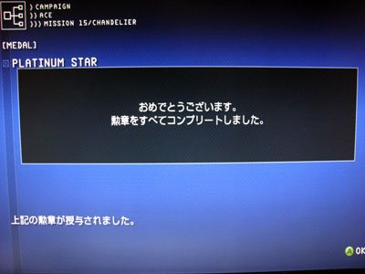 XBLA版「斑鳩」の配信が開始されました。さっそくゲイツポイント購入してDLしました。 アーケードやDC版でも美麗だったグラフィックがとんでもないことになっていますよ。すげー!しかも、これで800ゲイツと言うのが信じられん。パッケージソフトで出しても文句言われないくらいの出来ですよ。やっぱり難しいけど面白いっす!! ついでにMr.Drillerも購入しました。こちらもボチボチ遊んでいます。結構楽しい! そんなわけで、相変わらずオイラの360は絶好調稼動中なわけですが、ようやく「エースコンバット6」の勲章をALLコンプリートしました。オフラインでの実績は全解除です。うほーい! 特に苦労したのが「機関砲のみでのクリア」と「最高難易度ACEのSランククリア」ですね。でも、腹が立つ難易度ではなかったので楽しく遊べましたよ。F-117雪歩でのALLクリアも出来たし満足ですよ。 マーケットプレイスで購入したACE OF ACESモードやオンラインなどでボチボチ遊んでいますのでまだまだエース6は楽しめそうです。でも、そろそろエロゲもやらなきゃな・・・ ![]() |