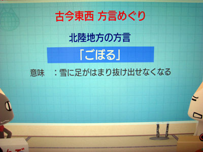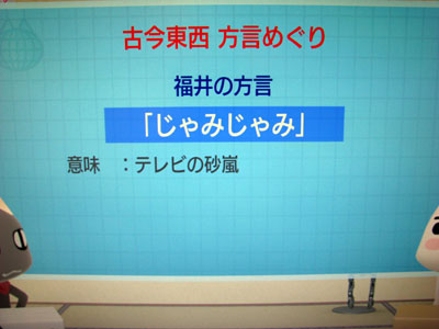 ![]() 福井ではテレビにノイズが入っているときもこう表現します。 ![]() 福井では「がぼる」と言いますよ。 ![]() 福井では「つるつるいっぱい」と表現します。おっぱいではありません・・・コラコラ さて、明日は福井県越前市の菊花マラソンですよ。今回も5キロを激走します。頑張っちゃうもんね♪ |