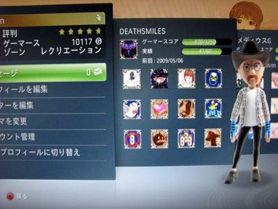 ![]() かあちゃん、とうとうやったぜ! xbox360の実績累計が10000を超えました。いやー、どんだけゲームしてるんだよ?って感じですね。まだまだ行くよー! そんな中でここ数日は「デススマイルズ」を延々とプレイしていました。オイラの実力では実績830が限界です。どう頑張っても得点2億・3億突破の実績は解除できそうにありません。 残る実績はブラックレーベルが配信されてからですね。既にゲイツポイント補充済みなのでいつでも宜しくてよ! |