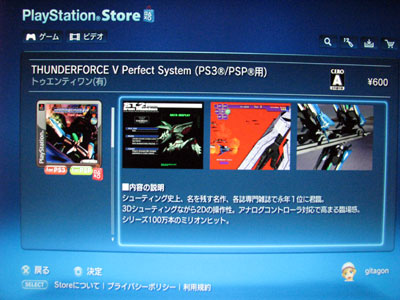 あれ?どうも最近、戯言を書いてもアップするのを忘れているようです。書いたあとサイトにアクセスして確認していないのが悪いんだろうな(苦笑) そもそも未だにHTMLで日記を書いているのってどうなの(笑) 昨日、PSストアにて「サンダーフォースX」がゲームアーカイブスとして配信されたらしい。早速、PS3を起動して確認したら本当でした。何だよ!一昨年にオイラ、PS版を中古で4500円くらいで買ったのに!それがたったの600円で遊べるってどーゆーこと(苦笑) 悔しいので早速購入してDLしました。だってPSPで遊びたいんだもーん。色々と痺れる演出と音楽。まぁ、フリーレンジが強すぎるけどフリーレンジを使わなければまた別の楽しみ方が出来るこのゲーム。やはり名作だなぁ。 あ、「ブロークンサンダー」と「サンダーフォースY」の事を思い出してしまった・・・泣 ![]() みんなも買え! |
