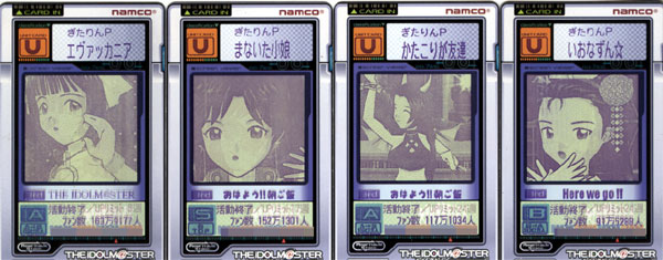 先日、東京へ行った時に秋葉原のゲーセンHeyにてアイドルマスターをプレイしてきました。福井や近県から姿を消してからアケマスを遊ぶのは約4年ぶりですよ。いやいや、もうそんなに経つのかよ!とビックリデス。 今月末でオンラインサービスが終了するので、全ユニットを引退させるのが目的でした。久々すぎてプロデューサーカードのパスワードや強制引退のさせ方など、色々と忘れていましたが無事に全ユニット引退しました。 ![]() アイドル大量引退! ![]() 歴代の雪歩 左から新→旧 ![]() そして誰もいなくなった・・・ |