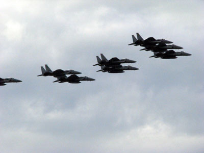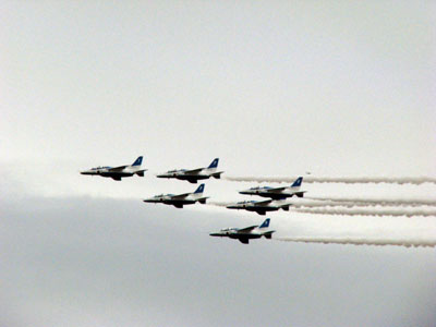 朝も早くから高速で岐阜県に向かいました。目的地は各務ヶ原市にある岐阜基地です。![]() 街の中にある由緒ある基地 目的はもちろん航空祭。今年はブルーインパルス誕生50周年の記念の年なのに小松基地航空祭ではあまりお天気が良くなかったのでリベンジです。とは言ったものの今日もあいにくの曇り空。青い空は拝めませんでした。 ![]() 岐阜基地名物の異機種大編隊飛行 ![]() デカイ輸送機も飛行展示するのがすげー ![]() 地上滑走中のF-15J ![]() 地上滑走中のF-2その1 ![]() 地上滑走中のF-2その2 ![]() 地上滑走中のF-4J ![]() 今年配備されたばかりの次期輸送機XC-2。で、デカイ! ![]() T-2 ![]() ブルー飛んだぜ! ![]() やっぱりかっちょえー! ![]() すばらしい! ![]() うつくしい! あと、C-1やC-130などの大型機が展示飛行をするのも小松基地では見られない風景で燃えましたね。あんなにデカイのに意外と機動性が良くてビックリ。まぁ、旅客機であんなアクロバットなことをやったら怪我人続出でしょうけどね。 そして、今回のブルーですがまたもや曇り空の中での飛行展示でした。後半では雨が降ってきましたが、最後まで演目をやってくれたのは嬉しかった。でも、やっぱり青空で見たいぞ!チクショウめぇ! 何にしても楽しい一日でした。やはり空はいいなぁと帰りの大渋滞の中でそう思いましたとさ(苦笑) |