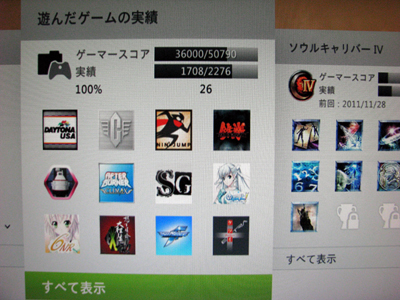 ![]() 箱○サイコー はい、地道に解除し続けているxbox360の実績ですが36000になりました。もちろん端数出ないようにこの為に調整したよ(苦笑) 年内に40000突破をしたいと思っていましたが、このペースではムリっぽいな。積みゲーは山ほどあるのでゲームには困らないんだけど遊ぶ時間がない。解除率にも70%はキープしたいとこだわっているので1つのゲームを遊び尽くすまでに時間がかかります。 まぁ、買ったゲームをムダにせずに隅々まで遊ぶのは良いことだと思っておこう。 |