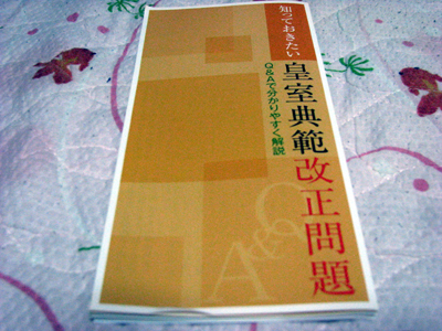 昨日、敦賀に行った時についでに気比神宮にも参拝してきました。巫女さんが3人も居たのですがその話は取り合えず置いておきます。まぁ、眼福ありがとうございました(笑) そこでこんなパンフレットを見つけました。 ![]() 神道政治連盟だそうで 今、話題となっている女性宮家設立に伴う問題点などが分かりやすく(?)書いてあります。まぁ、ぶっちゃけ言うとこの団体は女性宮家の設立には反対らしい。将来的に女系天皇が生まれる可能性があるからダメなんだそうな。 で、それを解決するには戦後間もなくにGHQにより皇籍離脱させられた旧宮家を復活させるべきとの意見らしい。まぁ、ずっと男系で続いてきた皇室を女系でも認める危険性は理解できる。 でも、戦後60年以上も平民として暮らしてきた人がいきなり皇位継承と言うもの今の時代にはそぐわない気もする。難しい問題だねぇ。偉い学者さんたちが一番いい方法を考えてくれないかね? |