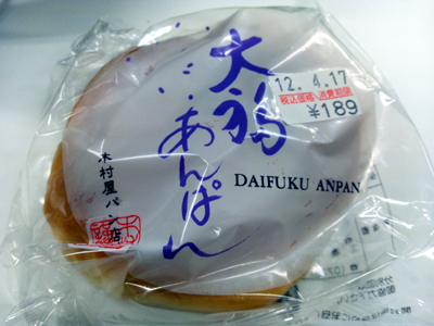 ![]() 大福あんぱん 福井県鯖江市のヨーロッパキムラヤと言うパン屋さんが作っている「大福あんぱん」です。その名の通り、パンの中に大福餅が入っています。 随分と昔から有名だったそうですが、オイラが知ったのはつい最近です。食べてみたいなぁと思っていたのですが中々、買いに行く機会が無かったのです。しかし、たまたま立ち寄ったショッピングセンターに売っていました。まさに灯台下暗し! 食してみたのですが、間違いなくパンの中に大福が入っている。でも、意外といける。餡子自体はパンに入っていても違和感が無いのは想像できたのですが、餅の歯ごたえもパンとマッチしてオイシイ。コレはたまげた! でも、パンと大福ですからね。カロリーが心配です(苦笑)。案の定、食べた後はとてもお腹が一杯になりました。ごちそうさまでした。今度はお店に行って、焼き立てを食べてみたいですね。 |