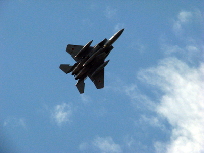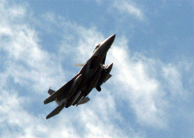 次の日曜日である10月14日、福井県鯖江市にある陸上自衛隊の鯖江駐屯地にて49周年記念式典が開催されます。それに伴い、何故かF-15の展示飛行が行われるのです。今までこんなことしたこと無かったのに何故? で、今日の午前中に試験飛行として2機のF-15が鯖江市上空を飛んでいました。かなり低空飛行で30分ほど飛んでいましたよ。仕事中に飛行の模様が見えて、テンションMAXですよ。いやー、やっぱり飛行機はイイなぁ! でも、あの爆音は毎日聞いていたら本当にタマランね。基地がある自治体に住んでいる方々には頭が下がります。 |