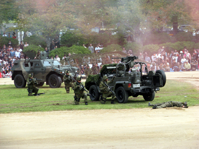 今日は福井県鯖江市にある陸上自衛隊鯖江駐屯地の創立記念イベントに行って来ました。何でも今年で49周年とのことです。今まで近くは何度も車で通ったことがあるけど、駐屯地内に入ったのは初めてです。 駐屯地と言ってもそこら辺の学校の敷地よりは狭い土地でこじんまりとした印象ですね。式典に参加していた隊員の数よりも来賓の数の方が多く見えたくらいですから(苦笑) ![]() バァーン! ![]() 49周年を記念して小松基地より303飛行隊のF-15が飛来 ![]() かっちょえー ![]() 74式戦車の試乗体験も ![]() 装甲車がババーンと ![]() 模擬戦闘でズババーン F-15の展示飛行を目当てに行ったのですが、良かったですよ。航空祭では見ることが出来ない角度での飛行侵入は胸熱でした。パイロットも地元福井県出身の方だったようで、空自の粋な計らいに感動しました。 模擬戦闘は空砲ながらも臨場感たっぷり。あぁ、自衛隊ってやっぱり軍隊なんだなと再認識させられました。 あと一番印象的だったのが記念式典が終わって日本国旗を片付ける際に来賓の起立を促し、とても厳粛に日の丸を扱っていたこと。自衛隊の日本の国土と国民の生命を守る心構えを強く感じました。その様子を見てとても誇らしく思ったオイラはあぁ、やっぱり日本人なんだなと強く思いました。 とても規模の小さい駐屯地ながらも、思ったより楽しめた今回のイベント。陸自もいいものだなぁと思いました。 |