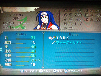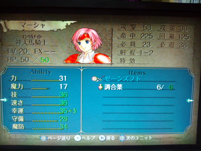 早いもので今日から6月ですよ。夏コミの当落も発表されたし、夏ももうすぐなんだなぁと何故か焦ってきます(苦笑) さて、Wiiリモコンを購入してからWii Uで「ファイアーエムブレム 暁の女神」を睡眠時間を削りながらプレイしています。ようやく第一部が終わりました。 成長率が意外と悪くて最終章では様々な攻略サイトに載っていた方法でチクチクと経験値を稼ぎ、そこそこ強くしました。登場時から強いキャラと弱いキャラの差が激しすぎて、つい強いキャラに頼ってしまうけどジッと我慢ですよ。でも、弱いので気を抜くとすぐお亡くなりになってしまう。やれやれだぜ・・・ そして、第二部に突入しましたがキャラクターがガラリと変わるのね。おい、これ合流したらどうなるんだろ?中途半端に育ったキャラだらけで誰を使うか迷うじゃないか。まぁ、それでも女性キャラメインになるのは間違いないけどさ・・・ そんな訳で「蒼炎の軌跡」でお気に入りだったマーシャちゃんの髪型が少し変わっていて「コレもカワイイな」とご満悦なオイラなのでした。頑張って続きを遊ばないとな〜 ![]() やっぱり可愛いのだ! |